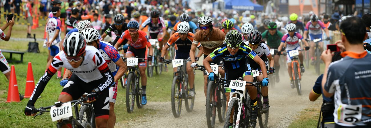 This event took place for the first time in 1991 under the name “SHIMANO RE-EX MTB Cross Country” at KOUMI Resort City RE-EX at the foot of Mt. Yatsugatake, Nagano Prefecture. Taking Shimano Greenpia Road (an on-road race festival) as a model, RE-EX MTB Cross Country aimed to be an off-road race festival that could be enjoyed by both riders and spectators. Race events at the festival were categorized for different levels, from entry to expert, and there were categories for children and women, too.