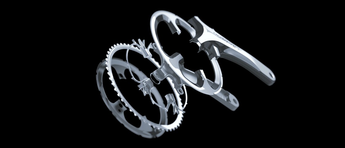 Hollow crank arms realized both light weight and rigidity.