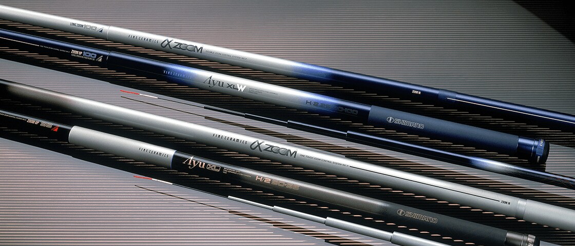 In quest of higher rod operability, Shimano developed a telescopic mechanism that enabled extension of rod length, and employed it in the Fine Ceramics α Ayu (a rod for sweetfish fishing).