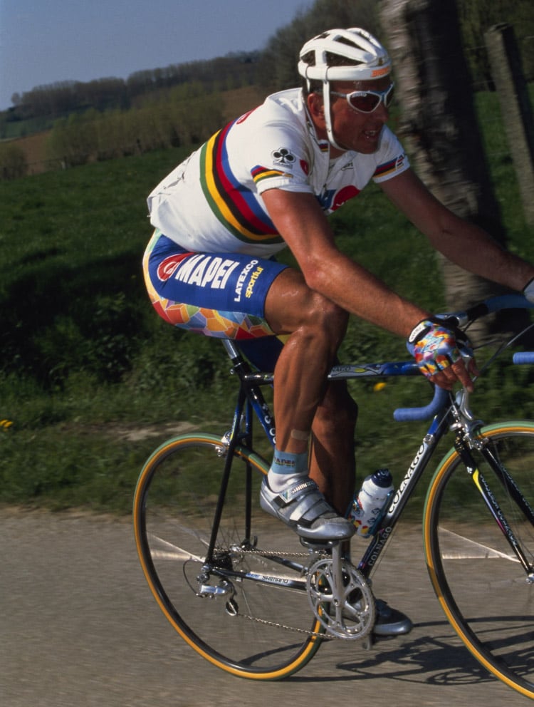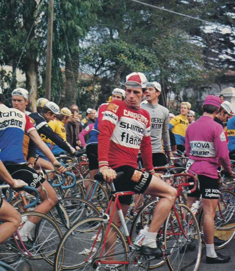 ヨーロッパのロードレース市場への参入は果たしたものの、当時DURA-ACEの名を知る者は、レース関係者でさえほぼ皆無でした。とにかく認知してもらおうと、シマノはヨーロッパの様々なレーシングチームにDURA-ACEを提供。その中で、ベルギーのプロチーム「Flandria」と正式にスポンサー契約を結ぶことに成功しました。レースへの実戦投入により、選手やメカニックから得られたフィードバックは、本場レースの過酷さを知る非常に貴重な情報となりました。それをもとに品質の改良・改善を重ねていくうち、徐々にDURA-ACEの名が知られるようになり、DURA-ACEを使用したいというチームも増えてきました。1978年には初のモデルチェンジを果たし、フリーハブや11Tトップギアなど数々の最新機能を採用した、EXシリーズをリリース。これにより、ヨーロッパにおけるDURA-ACEの地位は確かなものとなりました。1980年にリリースしたAXシリーズは、空気抵抗を際限まで減少させるエアロダイナミクスを取り入れ、驚きをもって市場に迎えられました。さらに1984年の7400シリーズでは変速の位置決め機構「SIS(シマノ・インデックス・システム)」を開発。過酷なレースにおいて、ミスのないシフトチェンジを可能としました。そして1990年、STI(シマノ・トータル・インテグレーション)思想のもと、シフト操作とブレーキ操作を1本のレバーで行うデュアルコントロールレバーが誕生。ハンドルから手を離さずに行える変速操作は、レースシーンを大きく変えました。2009年には、変速システムに電子制御を導入。DI2(デジタル・インテグレイテッド・インテリジェンス)による変速制御は、圧倒的なストレスフリーを実現し、多くのレーサーの支持を得ています。