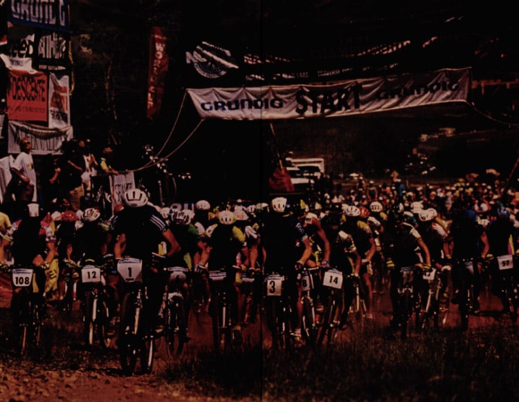 マウンテンバイクブームの勢いは1980年代後半になるとアメリカからヨーロッパへ、そして世界へと広がり、人々のこころをつかむ存在になっていきました。こうしたマウンテンバイクの普及に伴い、競技志向を強めるライダーたちの中には、ロードバイク用コンポーネンツであるDURA-ACEの部品を流用したり、ドロップハンドルバーを使ったりと、レースに勝つためのさまざまな試みをし始めたのです。このような状況から、シマノはレースに特化した過酷なライディングに耐えうる強度と品質、直感的な操作を可能とする専用コンポーネンツの必要性を感じ、新たな開発に注力。完成前のプロトタイプは、かつてないほどの早期から実戦に投入され、そこから収集したデータをすぐに分析してその改良に活かし、XTRを完成させました。世界各国のレースでは、多くのプロライダーがXTRの想像以上の軽さに感心し、シンプルかつ精度の高い操作性に驚きを見せたと言われています。
