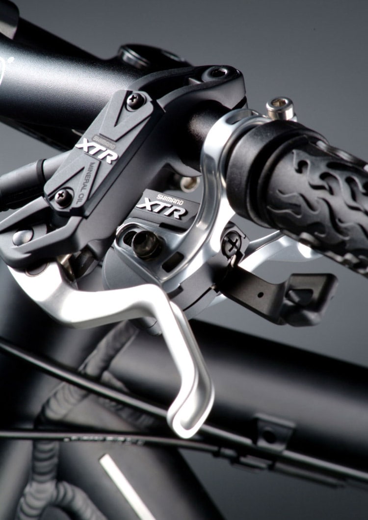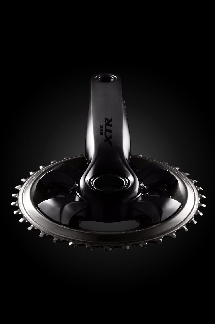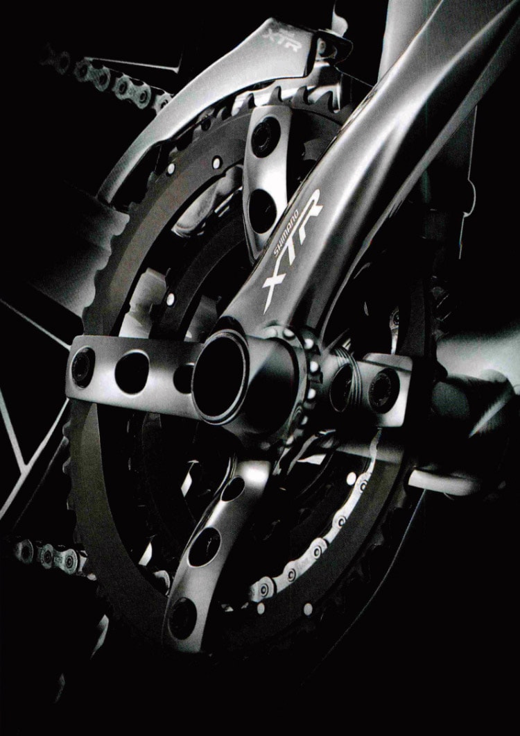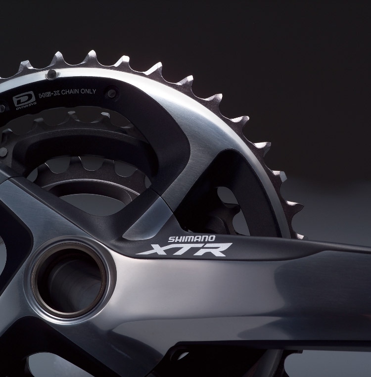 2006年にはデザインをさらに一新したM970シリーズが登場。チタンとカーボンをコンポジットしたミドルチェーンリングが採用され、リアディレイラーをはじめ各部に軽量化が施されました。2010年発売のM980シリーズでは、チェーン落ちなどの過酷な路面におけるトラブルを最小限に抑えるため、リアディレイラーにチェーンスタビライザーを採用。また、マウンテンバイクライドに最適化したギアレシオを提供するDYNA-SYSドライブトレインコンセプトを展開。