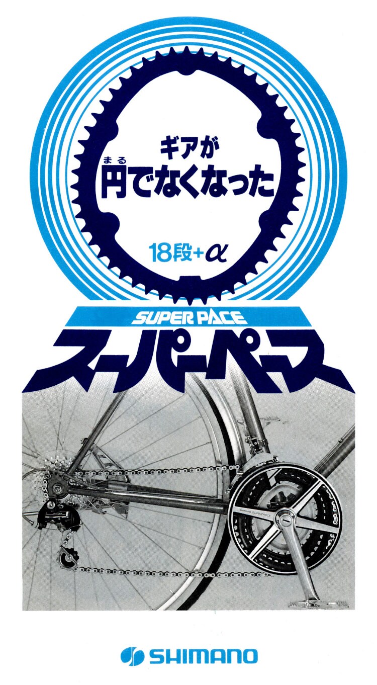1970年代後半から、シマノは人間工学に基づいた製品開発に着手。そんな中、人間の自然な足の動きに合わせたより効率的なペダリングを実現するため、チェーンリングを真円ではなく非円形にするアイデアが生まれました。1983年、BIOPACEと名付けられたこの新しいフロントチェーンホイールは、ロードバイク用コンポーネンツ「SHIMANO 600 EX」やマウンテンバイク用コンポーネンツ「SHIMANO DEORE XT」など、複数のシリーズに展開されました。このBIOPACEを日本国内のスポーツ車向けに最適化し、訴求した製品が「SUPER PACE」です。トリプルのチェーンリングには、コンピューター設計によってそれぞれに異なる最適な形状を採用し、走行状況に応じた乗り味を提供しました。こうした人間工学に基づいたアプローチは、その後の製品開発にも大きな影響を与えました。